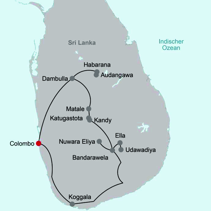 Flug ab/bis Deutschland nach Colombo, Rail&Fly, Rundreise ab/bis Colombo, Eintrittsgelder, Deutschsprechende Betreuung durch den Fahrer